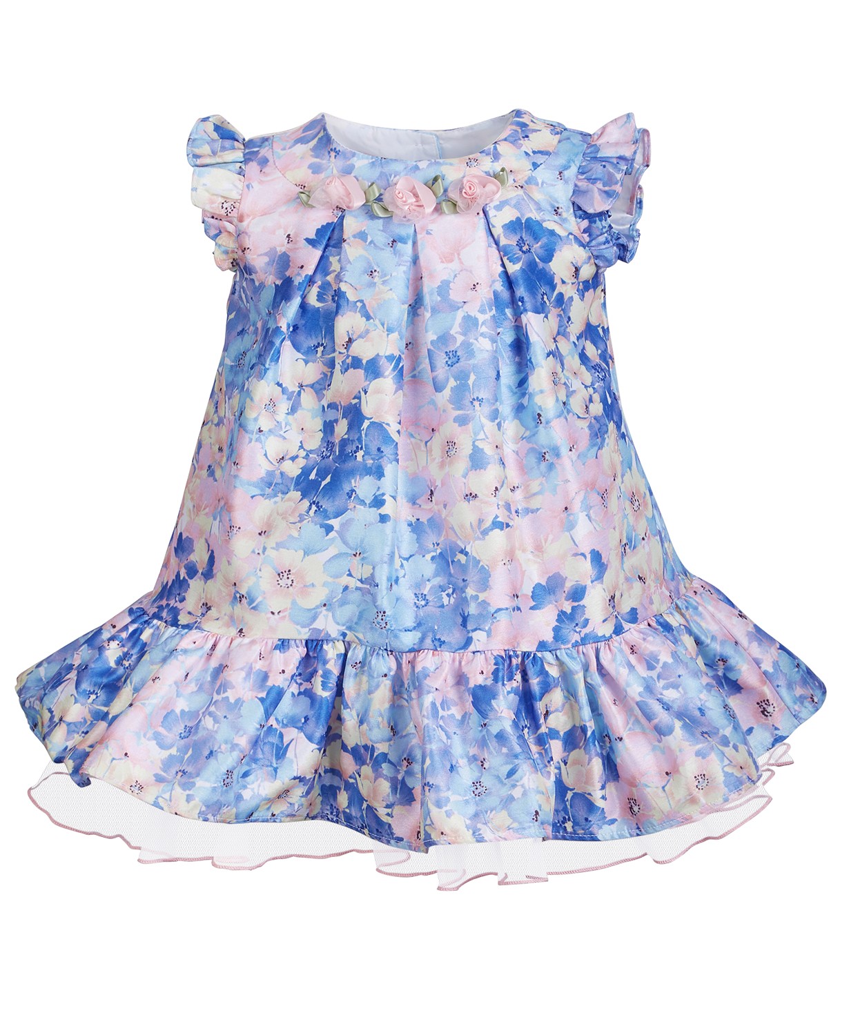 A soft watercolor print creates the dreamy look of this special-occasion dress from Bonnie Baby.; Back button closure; Crewneck; Rosettes at neckline; Includes matching diaper cover