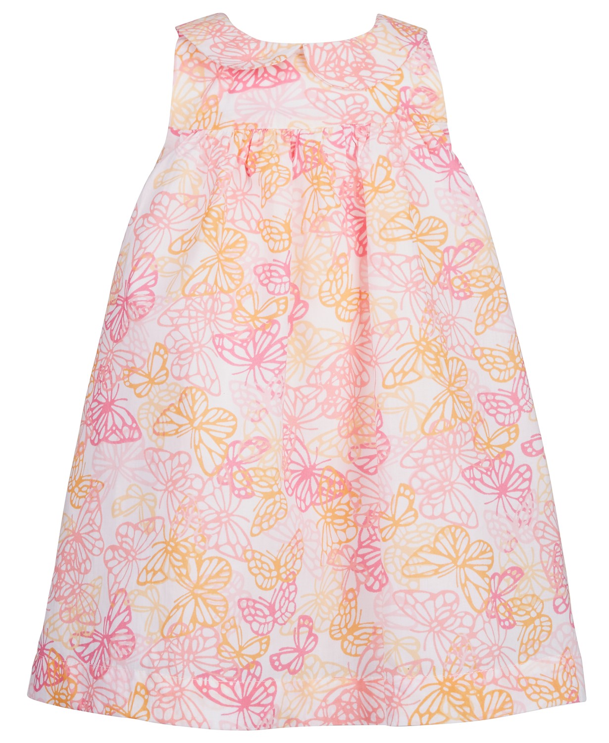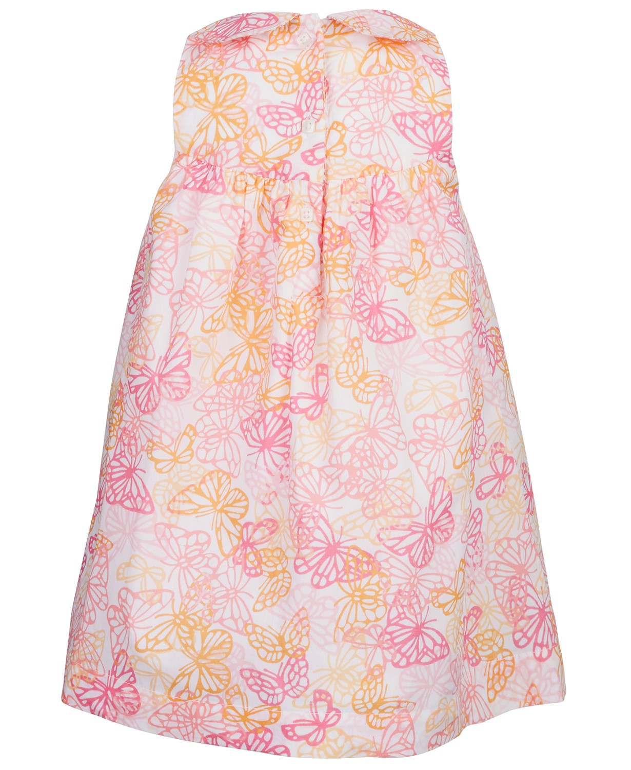 A timeless look for blue-sky days, this butterfly-print cotton sundress from First Impressions brings a sweet note to her casual look.; Peter Pan collar; Back button placket; Cotton; Color: Multi; Size: 0-3 months ; Machine washable; Imported