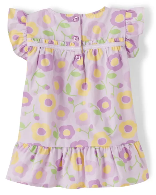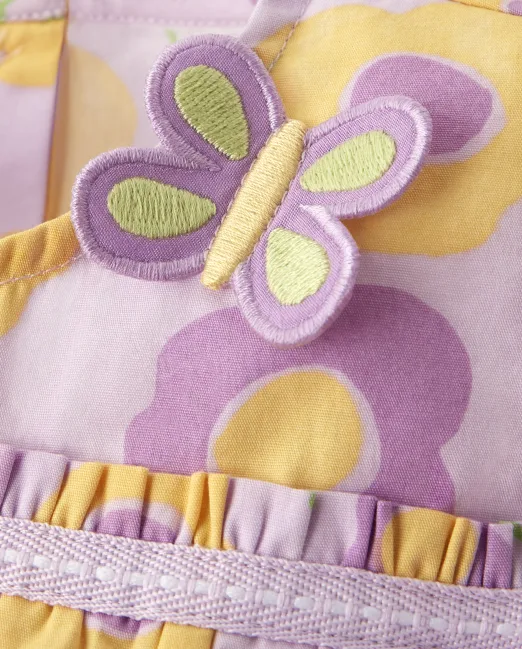 Our Girls Pocketful of Posies Collection Floral Top is made for dreaming big!; 100% cotton poplin; Buttons at back Color: VIOLET TWIST; Size: 18-24 M; Allover floral; Features butterfly applique; Ruffle hem; Machine wash inside out; imported