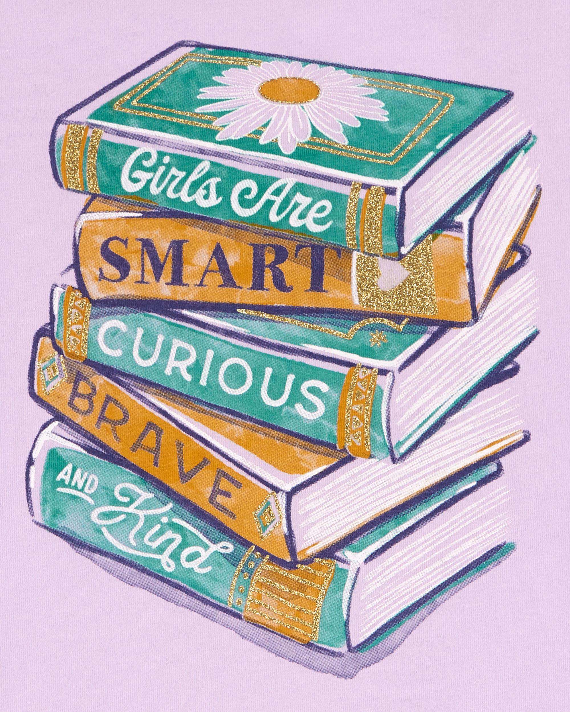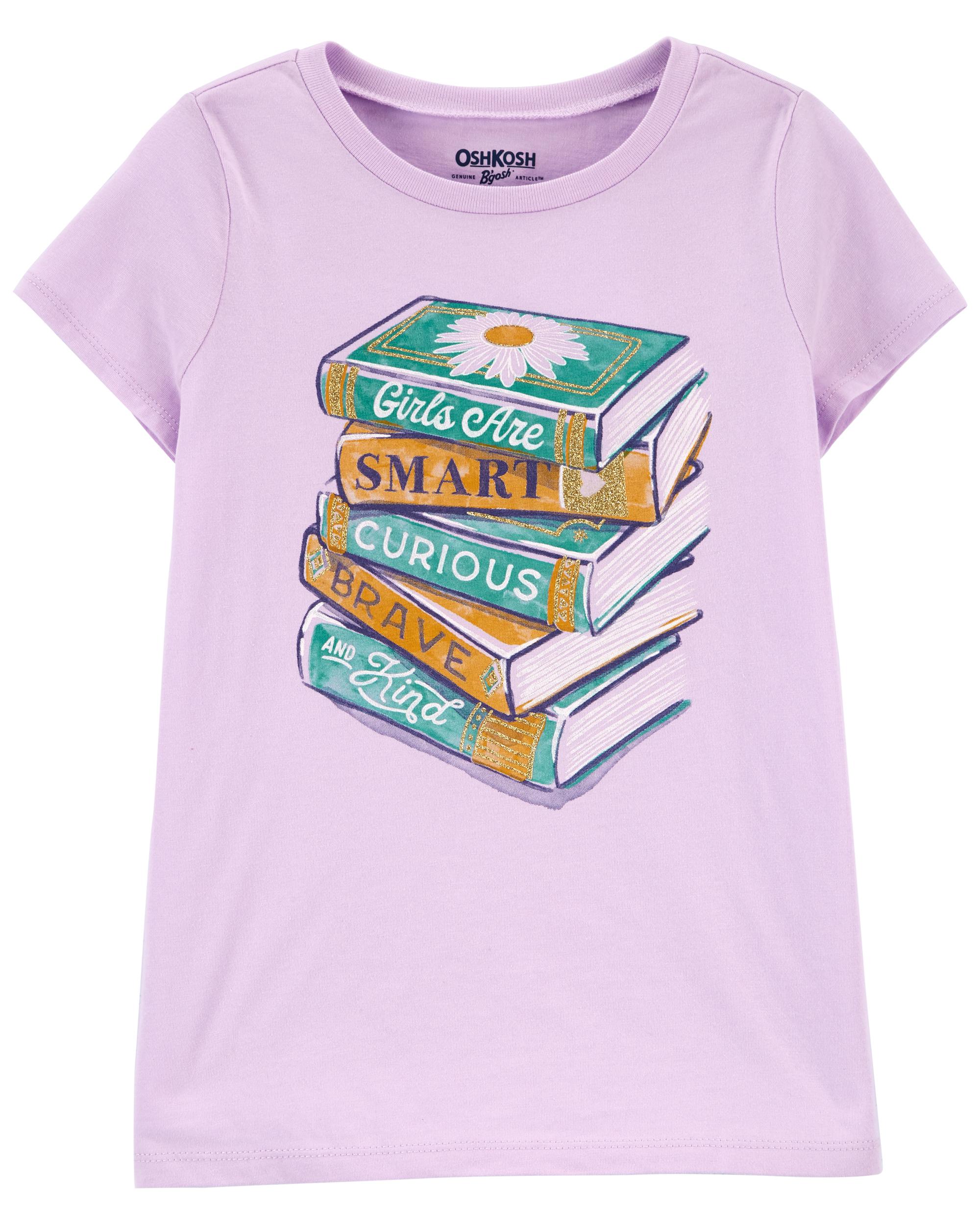 Smart, curious, brave and kind — this soft cotton tee reads her like an open book.