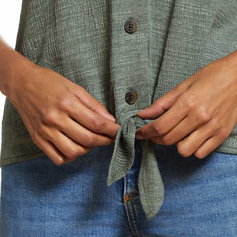 Tie knot at waist 67% Polyester | 32% Rayon | 1% Spandex